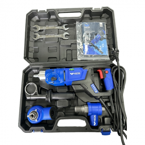 Дрель для алмазного бурения с микроударом KEOS KS-158 Pulsar (ручная установка, бесщеточная, 1800 Вт) – идеально подходит для бурения отверстий для прокладки коммуникаций.