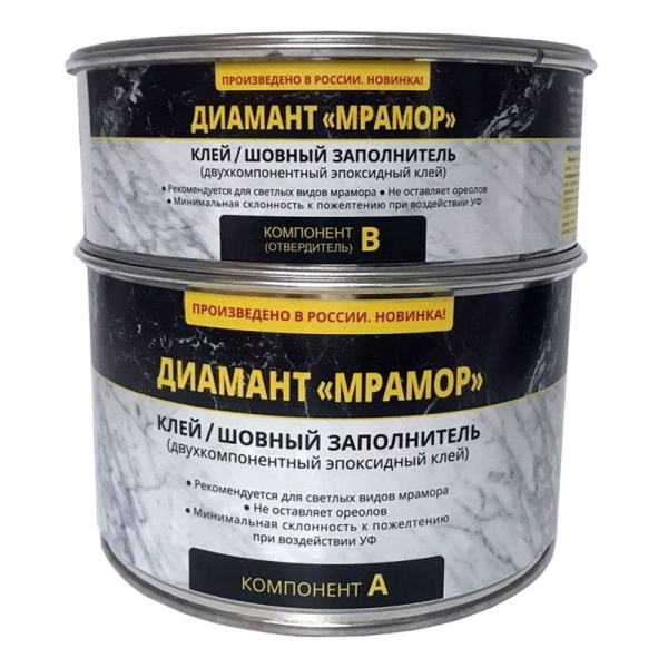 Двухкомпонентный эпоксидный клей-шовный заполнитель «ДИАМАНТ МРАМОР». Гелеобразный высокотиксотропный клей для склеивания и заполнения швов изделий из мрамора.